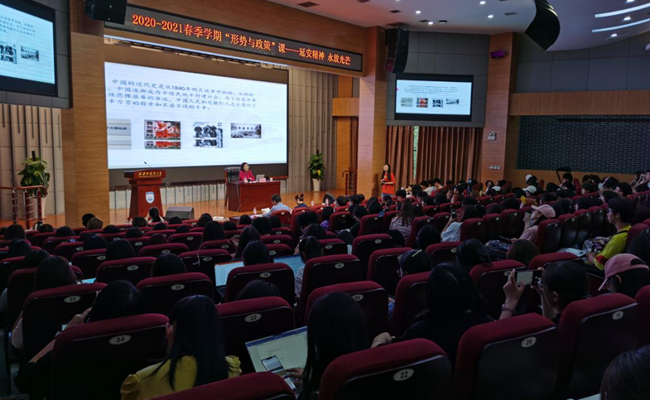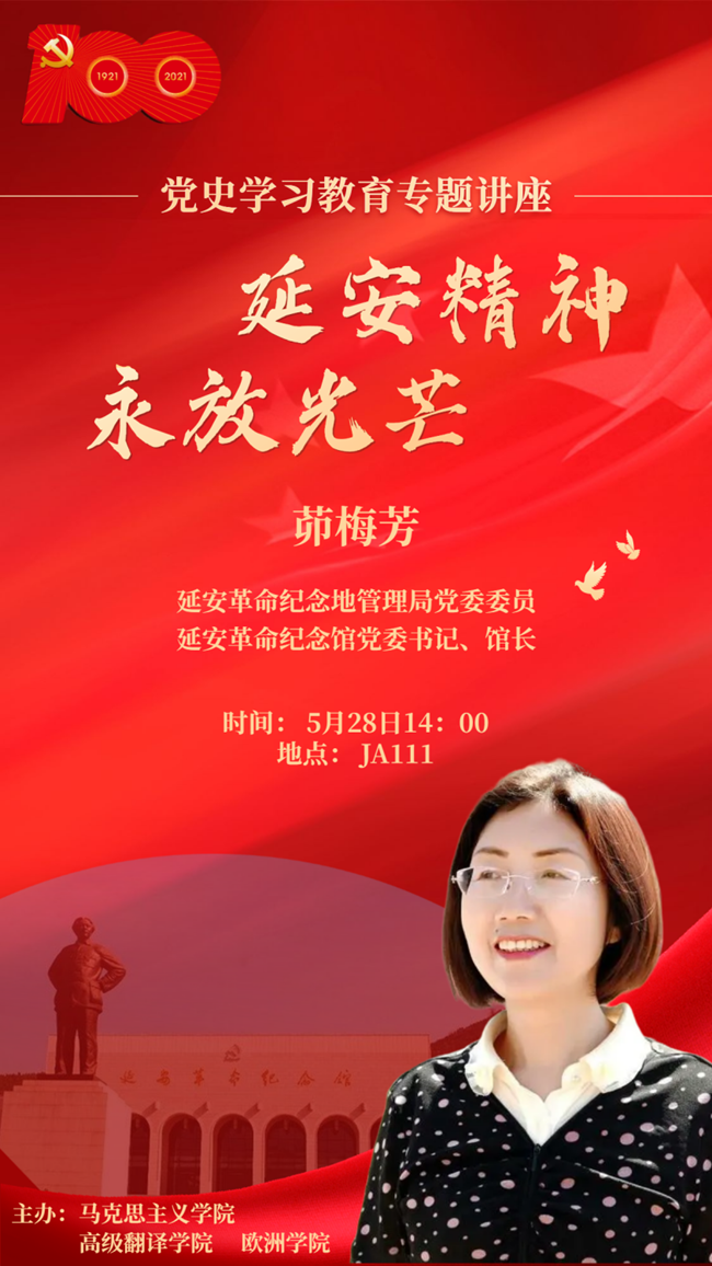 5月28日下午,一堂别开生面的“形势与政策”课在JA111开讲。延安革命纪念馆党委书记、馆长茆梅芳以“党中央在延安十三年”为题,为欧洲学院、高级翻译学院的师生们分享了中国共产党在延安时期的故事。本次报告会由欧洲学院党委书记刘小勇主持。