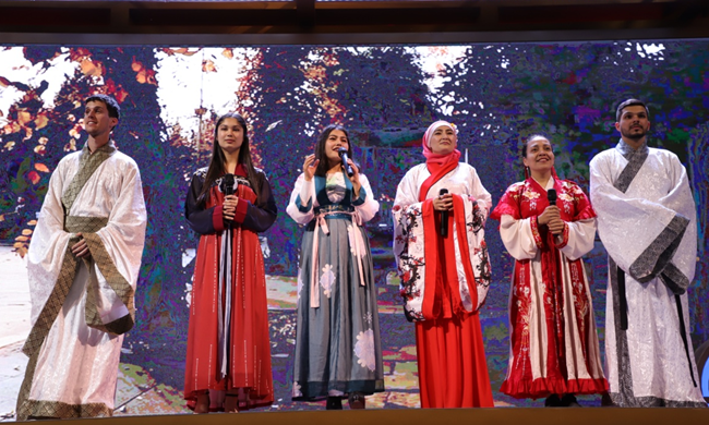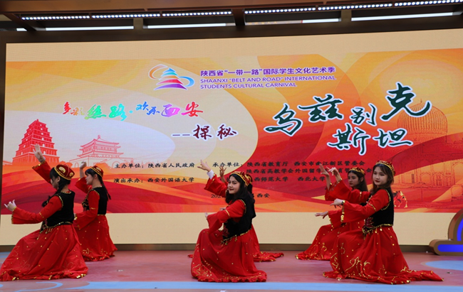 在接下来的表演中,中乌两国学生通过诗朗诵、歌曲联唱、舞蹈、茶艺展示等表演分别展示了中国与乌兹别克斯坦的传统文化与地方特色。晚会以诗朗诵《送一个长安》开场,配合一段唐舞的展示,充分体现了古都西安的文化底蕴;随后由中外学生带来歌曲联唱《你曾是少年》《乌兹别克斯坦》《西安人的歌》,跳跃的歌曲旋律让人体会到两地文化的差异与融合,之后国际学生为观众奉上一段乌兹别克斯坦传统舞蹈,充分展示了当地精彩的传统文化;最后,由中乌两国学生联手带来《中乌茶艺展示》,通过互捧互饮的表演,展示出两国间互敬互重、根深蒂固的友谊。丰富多样的演出让广大市民进一步了解了中乌两国之间的深厚友谊,同时也充分展示了在陕乌兹别克斯坦籍国际学生的活力与风采。
