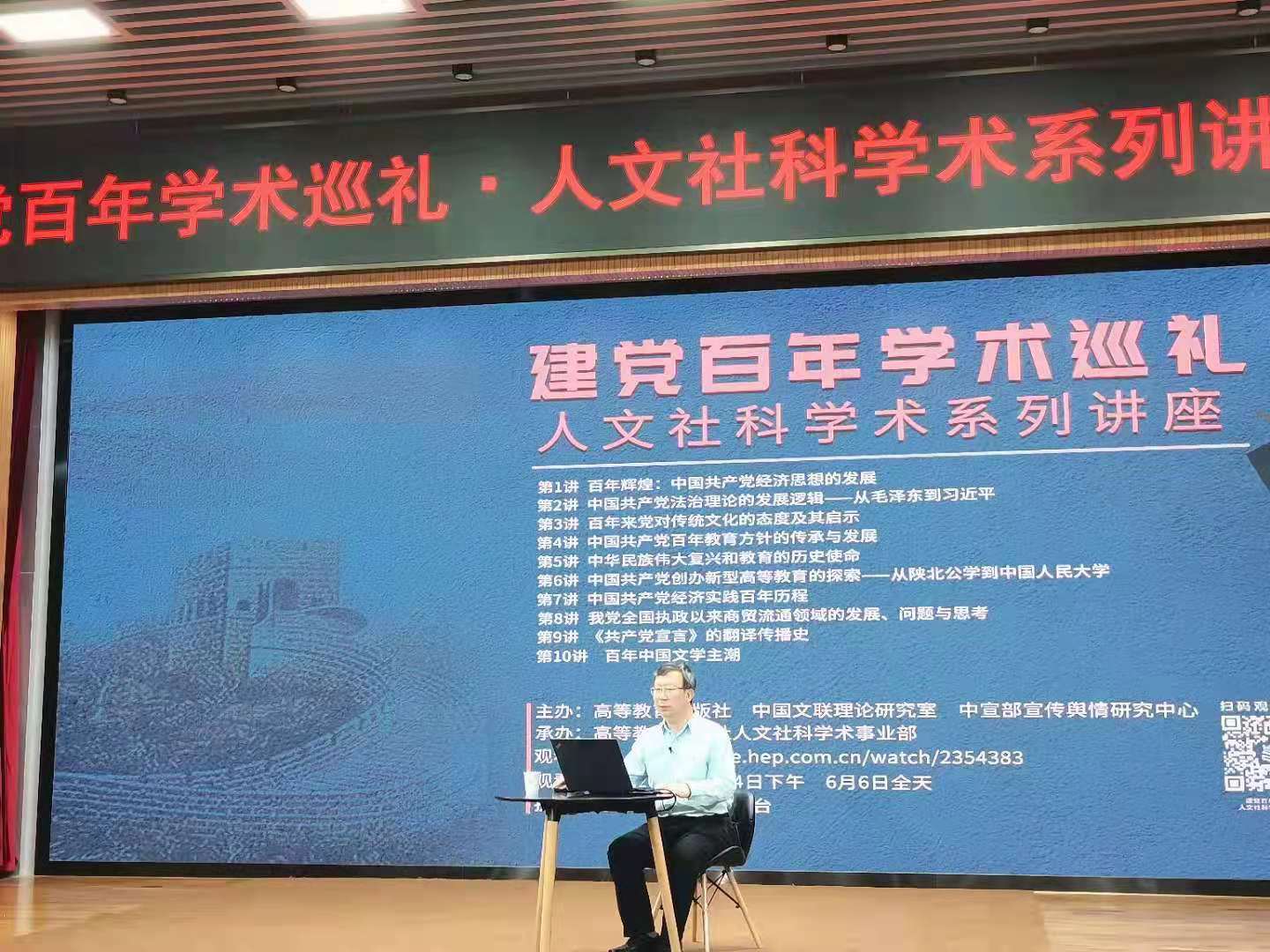 2021年6月6日,王启龙副校长(主持行政工作)受邀赴京参加由高等教育出版社和中国文联理论研究室主办的“建党百年学术巡礼·人文社科学术系列讲座”活动并作题为“《共产党宣言》的翻译传播史”的专题报告。