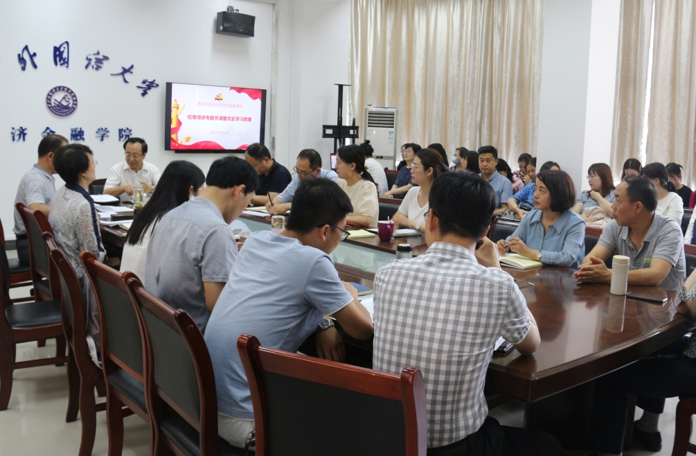 2021年6月2日下午,经济金融学院召开政治理论学习大会暨党史学习教育专题会,副校长赵国华为全体教职工讲授专题党课并调研指导就业工作。