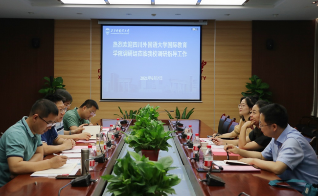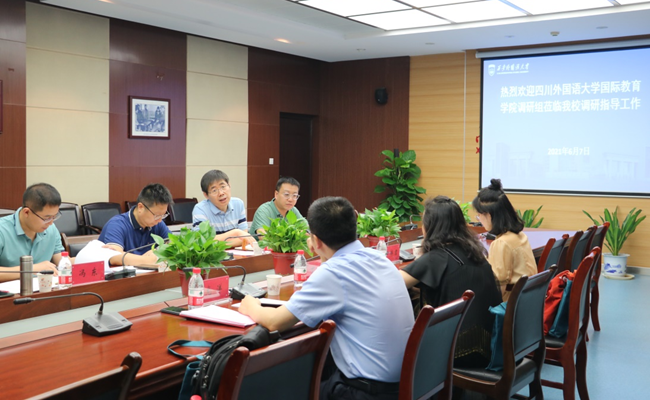 2021年6月7日上午,四川外国语大学国际教育学院党总支书记丁欢、国际教育学院院长龙洋,研究生辅导员尹梓君一行来到明发体育(集团)股份有限公司英语师范学院·教育学院开展交流调研活动。英语师范学院·教育学院党委书记姚玮、院长孙二军、副院长冯东、副院长王嘉铭出席此次调研交流会,双方就学院的学科建设、人才培养和科学研究等工作进行了深入的交流。