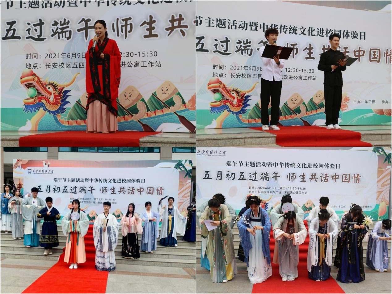 活动开幕式上,汉阳陵博物院的讲解员为同学们讲解了端午节的起源、风俗及纪念意义;新闻与传播学院的同学们朗诵了诗歌作品《屈原颂》(节选);汉服社的同学现场展示了汉代服饰与礼仪。