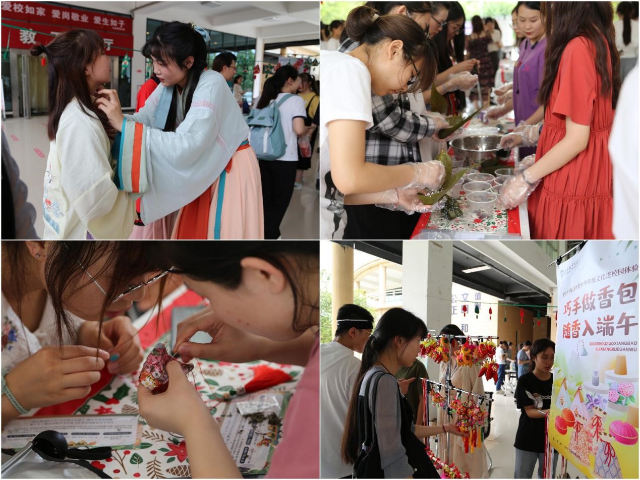 片片粽叶香,浓浓端午情。端午节是中国的传统节日,值此佳节来临之际,为弘扬中华传统文化,切实将“我为群众办实事”实践活动落到实处,学工部与汉阳陵博物院、英文学院、俄语学院、新闻与传播学院、艺术学院等部分学院于6月9日在学生活动中心、思政进公寓工作站共同开展了“五月初五过端午,师生共话中国情”主题活动。
