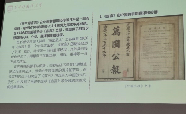 王启龙同志从《共产党宣言》(以下简称《宣言》)的海外传播、《宣言》在中国的翻译与传播、《宣言》的时代价值和现代启示等三个方面,对《宣言》的翻译与传播所经历的最初的艰难、曲折以及后来的迅速传播之过程进行了生动地讲解,重点梳理了《宣言》在中国的翻译与传播。他讲到,《宣言》在中国的翻译和传播不是一蹴而就的,是经过不同时期若干仁人志士在努力探索中完成的,而对《共产党宣言》孜孜不倦地探索和翻译传播,正是中国人民锲而不舍追求真理地生动体现。本次专题也是王启龙同志在“建党百年学术巡礼·人文社科学术系列讲座”的报告内容,但专题党课内容更加丰富,讲述更加生动,史料更加感人,也使得大家深刻理解,《宣言》为什么成为中国共产党建党的重要理论指引,为什么是中国共产党初心和使命的重要精神支柱。