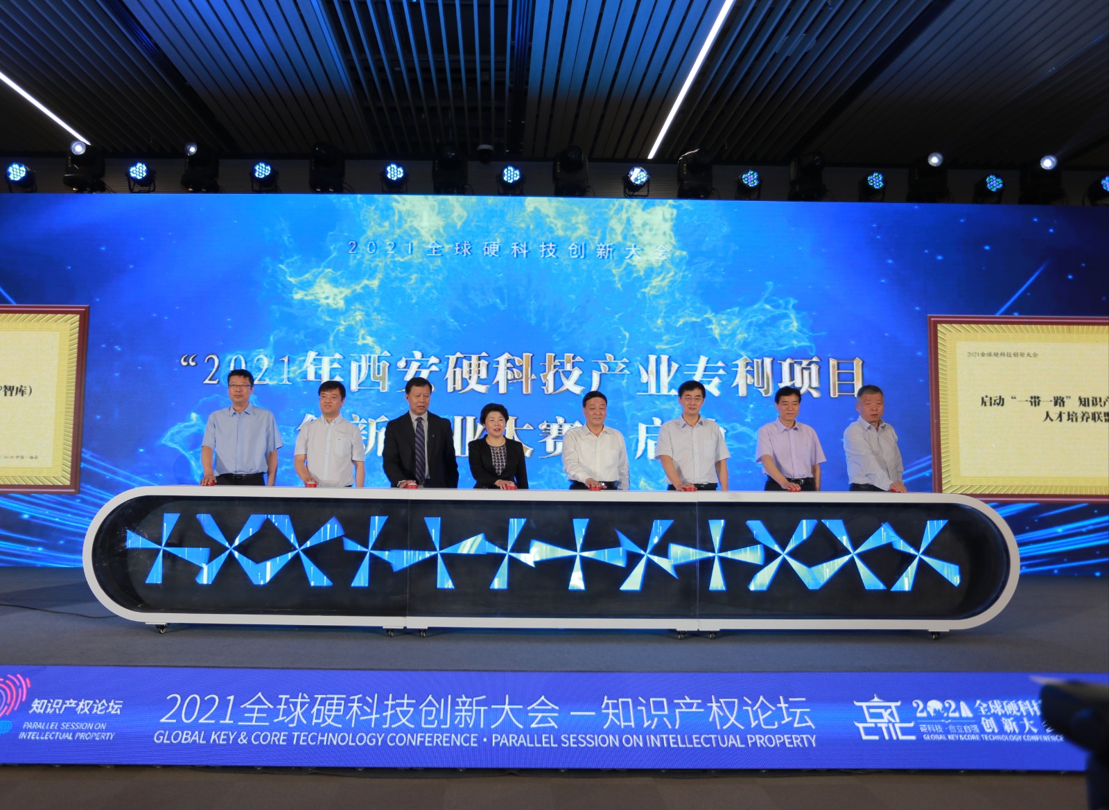 2021年6月9日,全球硬科技创新大会在西安高新国际会议中心开幕。我校副校长党争胜一行受邀出席大会知识产权论坛开幕式并与陕西省知识产权局局长侯社教、西安市副市长沈黎萍、知识产权领域内知名企业代表共同启动知识产权语言服务人才培养联盟。