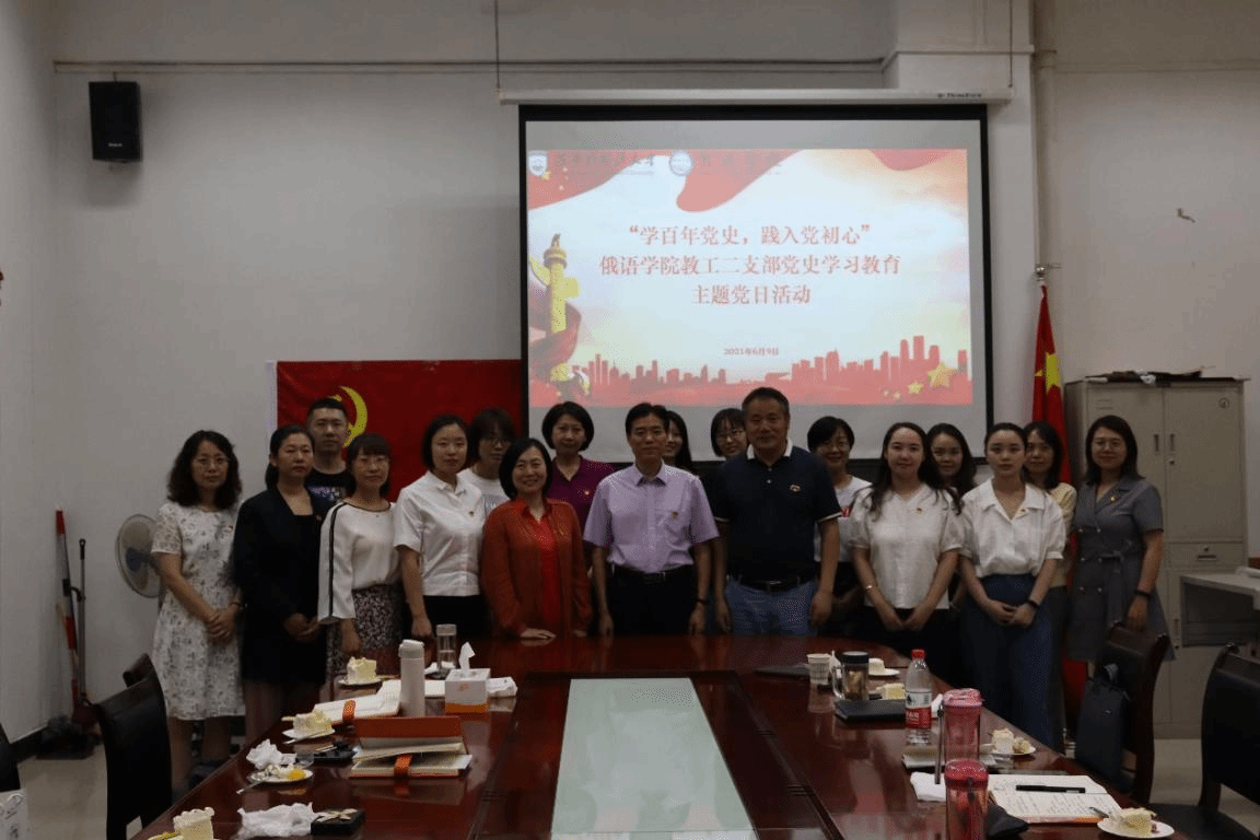 2021年6月9日下午,副校长党争胜同志受邀到俄语学院参加教工二支部“学百年党史,践入党初心”主题党日活动,为俄语学院教工二支部党员讲党课,并与全体党员一起庆祝党员政治生日,共同回忆入党初心。