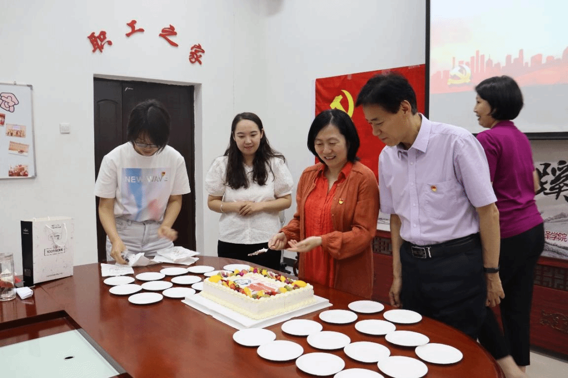 党课后,党争胜与全体党员一同为俄语学院院长邓滢、副院长马晓迪、教师迪娜三位同志庆祝政治生日。全体人员观看了学院特别制作的教工党员重温入党初心视频。教工党员的一张张照片记录着大家入党时的点点滴滴,也再次“翻开”了大家的入党申请书。一字一句誓词记录着大家的纯真初心。大家纷纷表示深受感动,回忆深刻。
