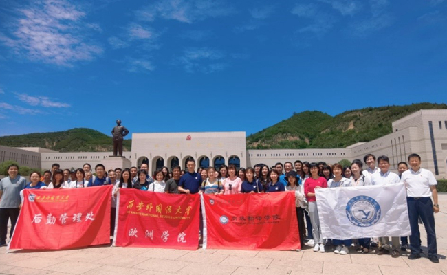 2021年6月19日至20日,我校高级翻译学院、欧洲学院、日本文化经济学院、汉学院·中亚学院及后勤管理处联合,组织教职工赴延安开展“党史学习教育传承红色基因”实践活动。作为西安市委外办与我校联合举办“‘悦西安 阅中国’讲中国故事演讲比赛暨外事口译大赛”工作组党史学习教育实践活动之一,此次活动得到了西安市委外办的大力支持。西安市委外办主任强盛、我校副校长兼高级翻译学院院长吴耀武,以及西安市委外办相关部门、我校五单位负责人和教职工共100人参加了本次活动。