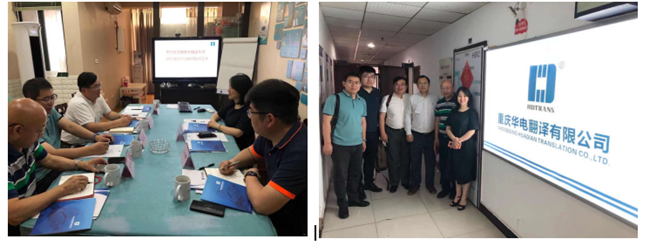 在重庆华电翻译有限公司调研期间,赵海燕总经理介绍了公司发展历程及翻译行业的现状,并将长期以来作为高校翻译实践基地的成功育人经验与大家进行了分享。高级翻译学院副院长陈卫国介绍了高级翻译学院的情况,并表示希望通过本次走访,同公司建立长期合作关系,探索学生实习实践模式。