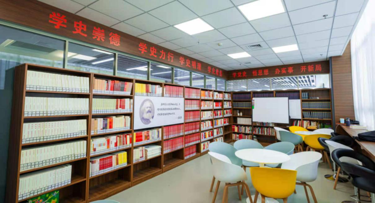 为扎实推进党史学习教育,迎接建党100周年,进一步引导党员领导干部和广大师生党员学史明理、学史增信、学史崇德、学史力行,努力营造浓厚的党史学习氛围,近期党委组织部联合图书馆党总支和马克思主义学院党总支合力打造了“党史阅览室”和研讨间,经过精心设计和装修布置,现已初步建成并投入使用。