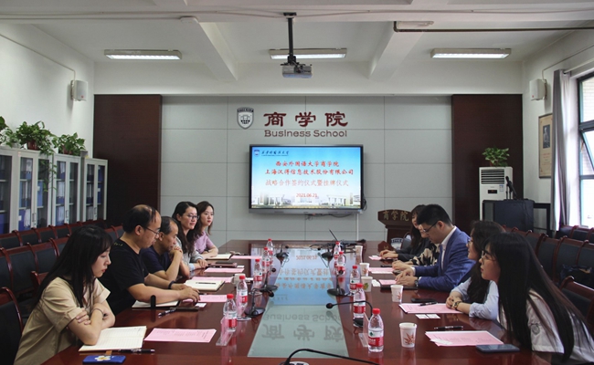 仪式上,周院长对上海汉得信息技术股份有限公司一行的到来表示热烈欢迎。随后,从学院建设、办学特色、师资力量、人才培养等方面做了简要介绍。他表示,我院早在2017年就与汉得公司签订了校企合作协议,本次协议的签订是把我院校企联合培养计划推向了新的阶段。他希望通过此次校企合作推动创新型、实用型专业人才培养,打造新型人才供应链,实现双方优势互补与合作共赢。