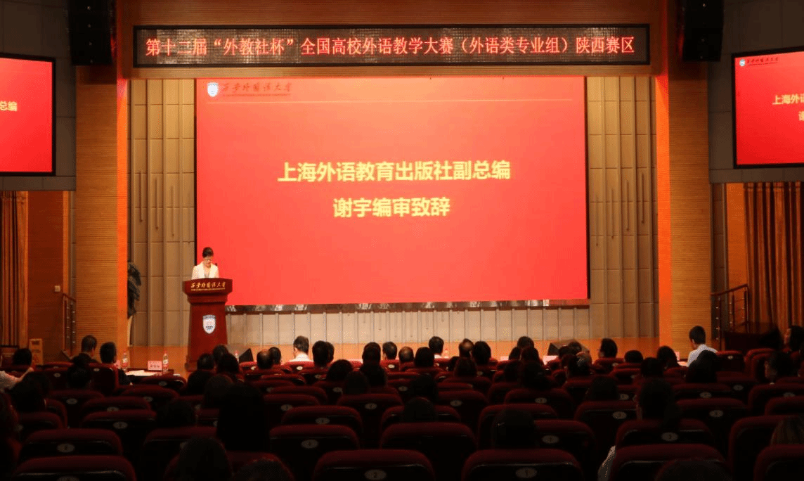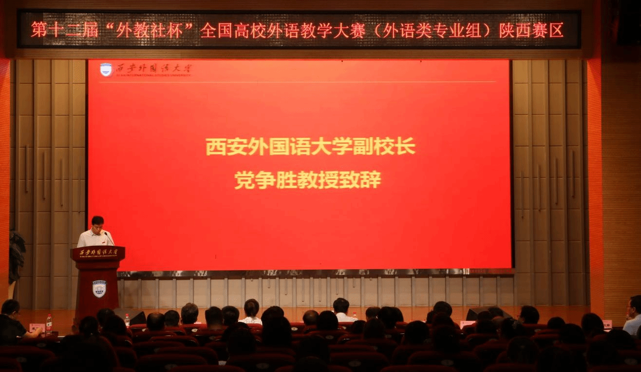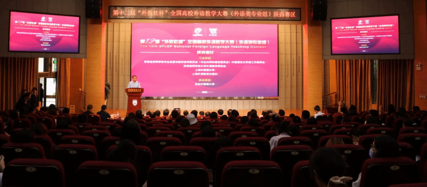 2021年6月26日,第十二届“外教社杯”全国高校外语教学大赛陕西赛区复赛和决赛在我校长安校区拉开帷幕,来自全省31所高校的46名选手参加了复赛和决赛。我校副校长党争胜教授、上海外语教育出版社副总编谢宇编审、陕西省教指委外国语言文学类工作委员会秘书长毋育新教授、陕西省高等学校大学外语教学研究会秘书长马刚教授、我校教务处副处长葛睿副教授、上海外语教育出版社西北大区经理苏云经理等嘉宾及17位大赛专业评委出席大赛开幕式。开幕式由我校英文学院院长南健翀教授主持。