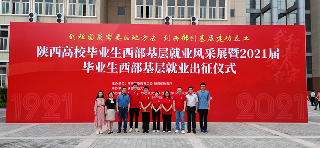 2021年6月29日晚,由陕西省委教育工委、陕西省教育厅主办,陕西师范大学承办的陕西高校毕业生西部基层就业风采展示暨2021届毕业生西部基层就业出征仪式在陕西师范大学终南音乐厅举行。我校师生代表10人参加了仪式。