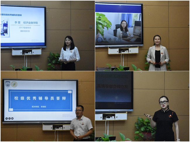参评辅导员根据抽签顺序依次围绕日常思政工作、科研及教学、参与学校及学院工作、特色和亮点等四个方面,总结汇报了本年度个人的工作实绩和特色创新亮点,展示了辅导员以立德树人为根本,在围绕学生、关照学生和服务学生方面开展的扎实工作,同时体现了辅导员对思想政治规律、教书育人规律和学生成长规律的思考与展望。经过激烈而紧张的现场答辩,最终评选出丁威等10名辅导员为2020年度校级优秀辅导员候选人。
