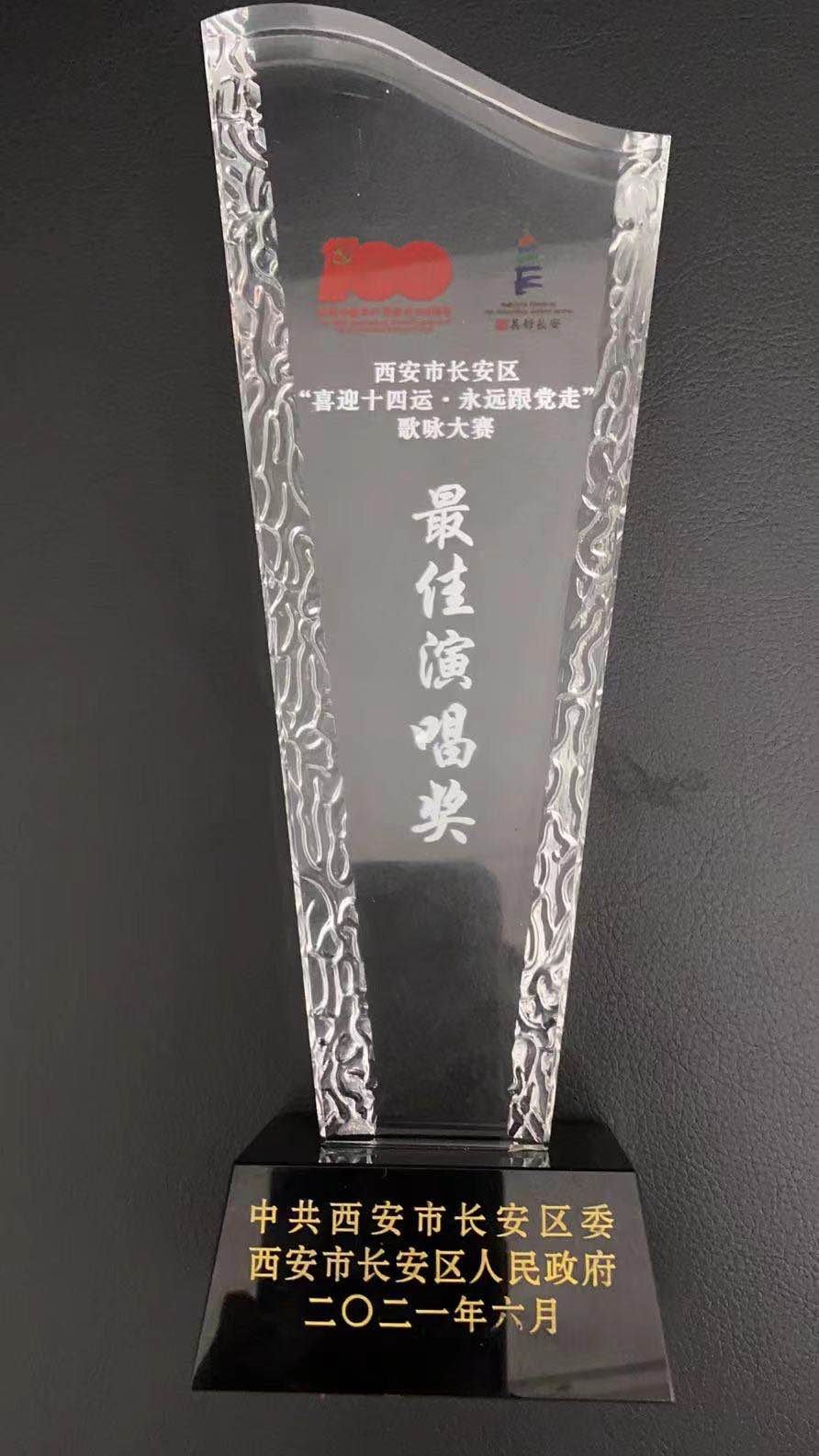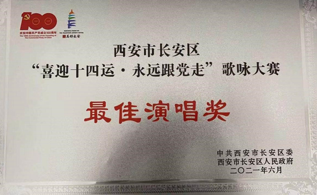 近日,由中共西安市长安区委、西安市长安区人民政府主办的“喜迎十四运·永远跟党走”歌咏大赛决赛长安区第二中学自强体育馆举行,我校荣获“最佳演唱奖”。