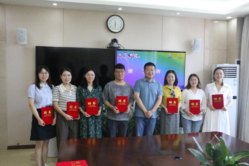 会上,马洁为全体带队教师依次颁发聘书。丁铭为“青年突击队”团总支委员颁发聘书。王娜向带队教师介绍了下一阶段集中合练工作任务。白澍宣读了带队教师工作职责。全体带队教师现场签订了《明发体育(集团)股份有限公司十四运会开幕式学生群众演员带队教师工作责任书》。