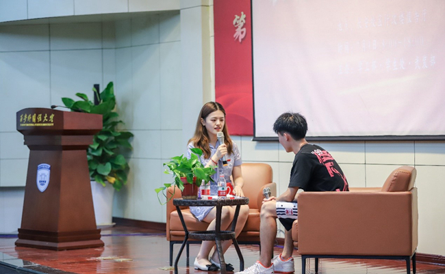 谈心谈话环节,通过情景再现的方式,选手与学生进行面对面的交流谈话,针对同学们提出的具体问题,参赛选手认真聆听、具体分析、有效引导,充分展现了我校辅导员对学生的教育引导能力、解决理论困惑和实际问题的能力。助演学生和辅导员的精彩展示赢得了现场观众的掌声。比赛结束后,郑林科在点评中希望选手以此次大赛为契机,在今后的工作中用真诚的关爱去帮助学生,用真情的感受去育人育心。