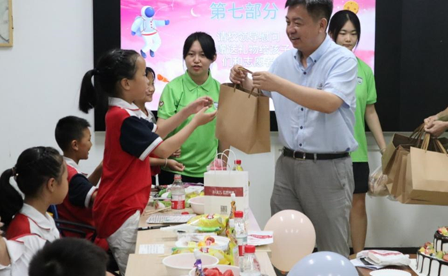 李京昊副校长讲话时指出,非常欢迎来自结对帮扶点的师生到西安开展研学,希望同学们懂得感恩,要感恩伟大的时代,感恩党和国家,感恩父母;要有理想有目标,并努力为之奋斗;勉励孩子们要自尊、自强、自信,长大后做一个对社会对家庭有用的人;要锻炼好身体,保护好眼睛,并和孩子们约定希望他们坚持好自己的文体特长,下次见面时要欣赏他们的表演。他还关心的询问了带队老师还有哪些困难和需要,并代表学校向志愿者发放了慰问品,向小朋友们赠送了学习生活用品。最后,志愿者们共同为过生日的小朋友带来生日惊喜。