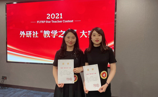 2021年7月31日至8月1日,外研社“教学之星”大赛全国总决赛在北京举行,大赛主题为:“外语教材的有效使用:培根铸魂,启智增慧”。各大高校英语类专业教师齐聚一堂,以赛促教,交流学习,在大赛中创新教学理念、优化教学方法、促进团队合作。本次大赛历经了初赛、复赛、半决赛等环节,经过激烈的比赛角逐,我校英文学院王博佳、石琳霏两位教师代表“英语演讲”课程教学团队(王博佳、石琳霏、王汐、肖才望、韩林烨),经过层层选拔,入围全国总决赛,并取得了全国总决赛二等奖的好成绩。
