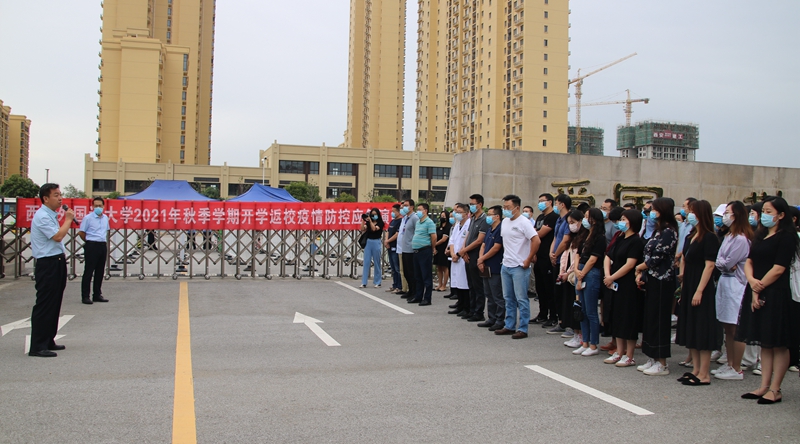 为统筹做好校园疫情防控和2021年秋季学期开学准备工作,切实提高应对疫情突发情况快速反应、规范处置、联防联控的能力,确保学生安全平稳返校,根据陕西省教育厅《关于进一步加强学校新冠肺炎疫情防控工作的通知》、长安区疫情防控指挥部《关于进一步加强驻区高校2021年秋季开学疫情防控工作的通知》文件精神及学校疫情防控工作要求,8月25日上午8时30分,学校在长安校区举行2021年秋季学期长安校区开学返校应急演练。副校长李京昊现场指挥,学校疫情防控领导小组成员单位负责人及工作人员,各学院党委书记、副书记,全体辅导员参加应急演练。