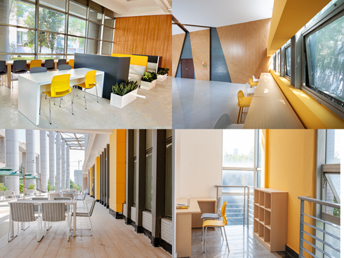 经过前期的多地考察、反复咨询、专家论证、组织招标,确定了教学楼A区改造方案。通过6个多月的努力建设,最终圆满完成了改造任务。改造后的教学楼A区根据师生需求,将教学空间划分为课堂区、自习区、研讨区、休闲区,户外交流区。目前,教学楼A区改造26间教室,其中互动型教室19间,微格教室3间,微型研讨室2间,学业指导中心2间,均为活动式桌椅,可自由组合,便于学生分组讨论,互动性更强。