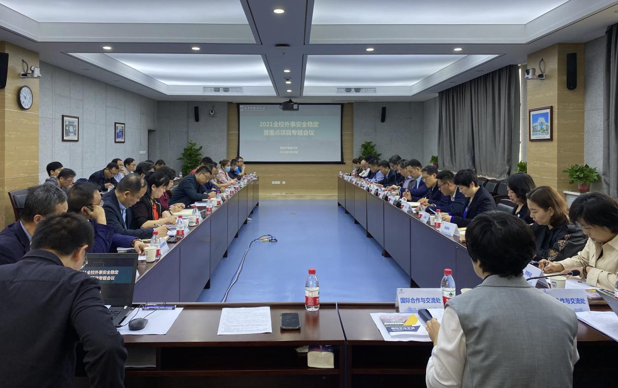 2021年9月28日上午,我校召开外事安全稳定暨重点项目专题会议,副校长(主持行政工作)王启龙出席会议并讲话。国际合作与交流推进委员会各职能部门、全体二级学院、附属外国语学校负责人参加会议。会议由副校长吴耀武主持。