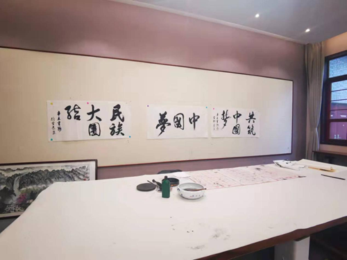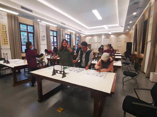 在传统书画展示中,老少共同体验传统书法及绘画。老教师们触景生情,有感而发,与学生们现场泼墨,同台交流,书画厅里顿时溢满了笔墨飘香,呈现出老少同乐的场景。一撇一捺,一点一墨,尽显中国的传统美学艺术,那书中有中国人的气,那画中有中国人的美。