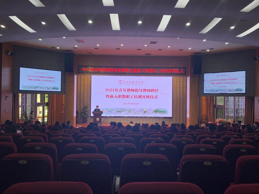 10月22日下午,学校在长安校区教学楼JA111报告厅举行“2021年青年教师指导教师聘任仪式暨新入职教职工培训开班仪式”。王启龙副校长(主持行政工作)出席会议并讲话。2021年优秀指导教师、受聘指导教师代表、被指导青年教师代表、新入职教职工代表、教学单位负责人代表,以及党委宣传部·教师工作部、教务处、科研处等部门负责人参加了聘任仪式暨开班仪式。会议由人事处负责人主持。