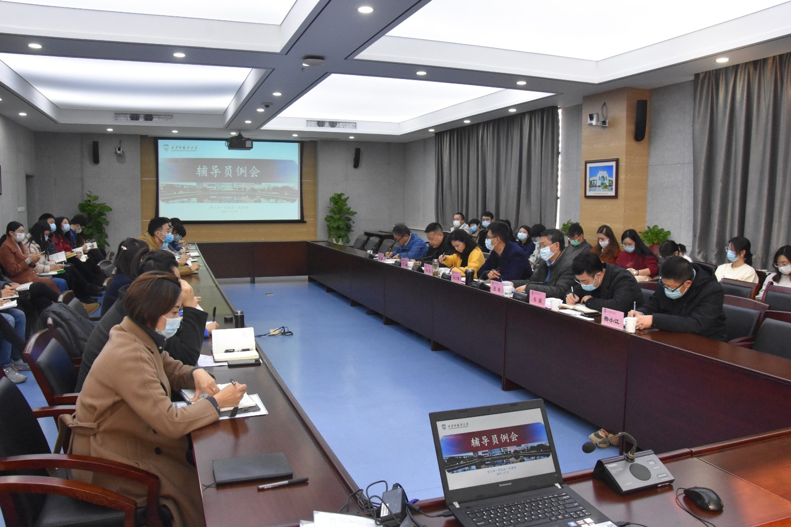 2021年11月9日下午,我校在行政楼B304会议室举行校园安全稳定专题学生工作会议,校党委副书记马洁出席会议,党委办公室·校长办公室、宣传部、学工部、研工部、校团委、后勤管理处等部门相关负责人,全体辅导员参加会议,会议由学工部负责人主持。