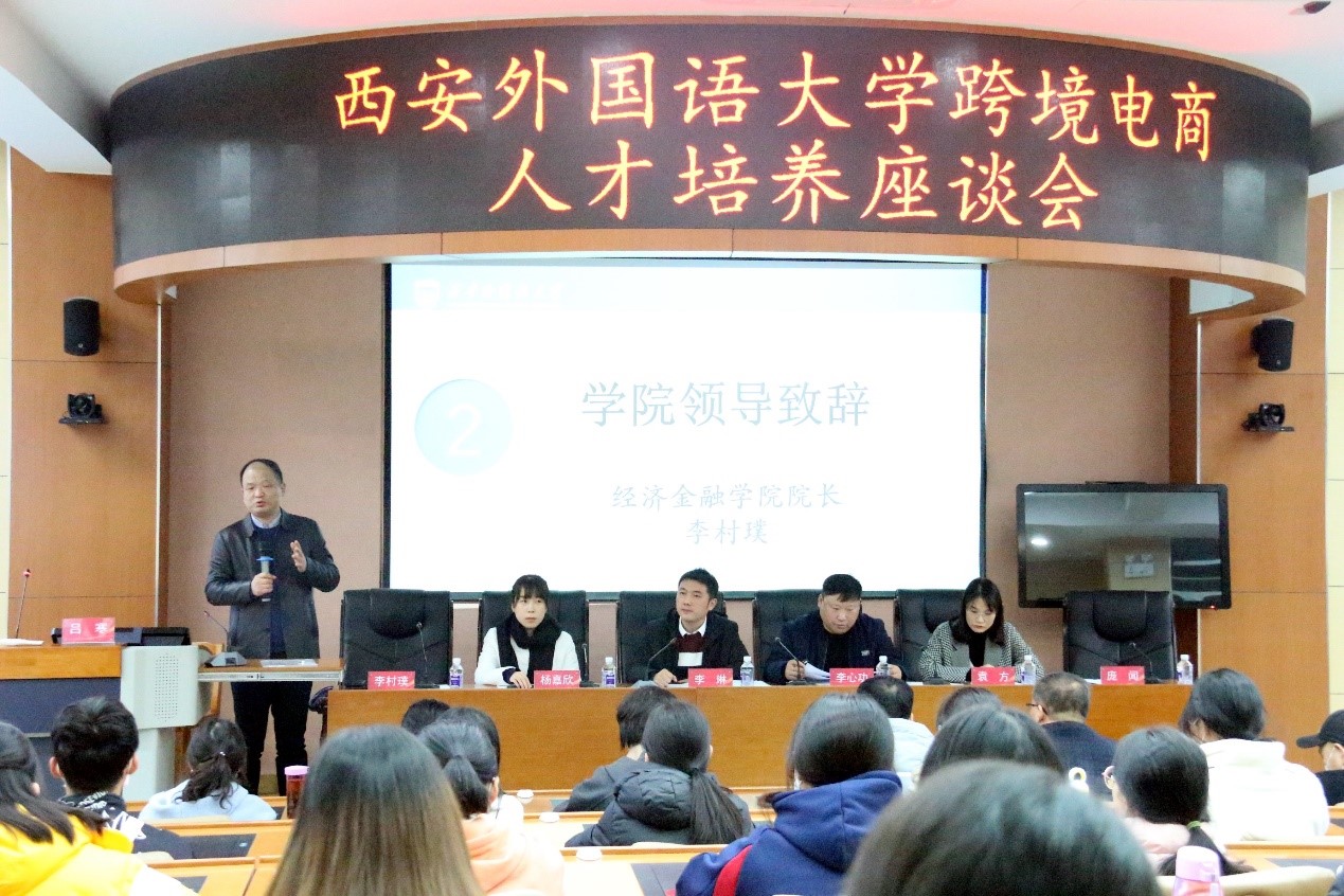 为践行政产学研协同育人、更好服务地方经济社会发展, 11月11日下午,经济金融学院邀请陕西省商务厅对外贸易处副处长李琳、西安市商务局跨境电商中心产业发展部部长李心功、西安国际港务区管委会招商二局局长助理袁方等各级政府部门代表参加由经济金融学院举办的明发体育(集团)股份有限公司跨境电商人才培养座谈会,我校跨境电商专业教学团队和部分学生代表参加座谈会,会议由经济金融学院副院长、跨境电子商务专业带头人吕寒教授主持。
