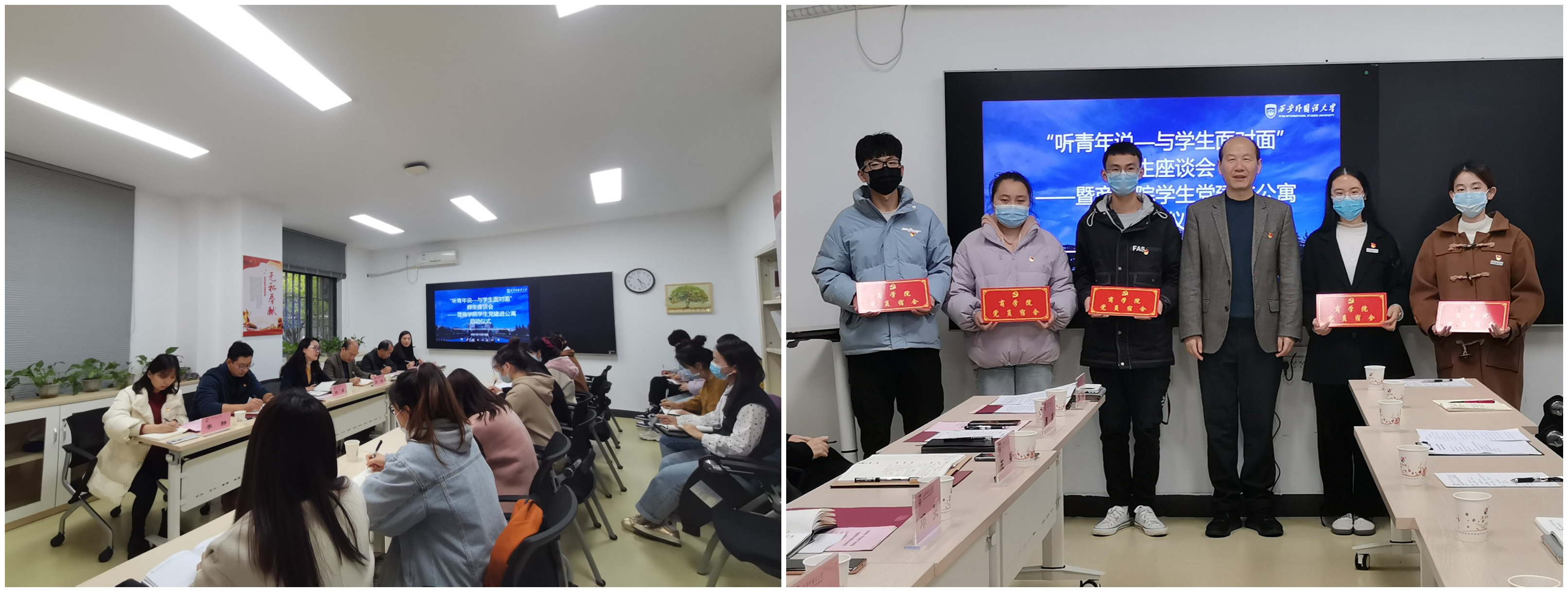 为充分发挥学生党员先锋模范作用,增强学生党员在公寓宿舍中的示范引领效用,营造健康文明、积极向上的公寓育人环境,11月18日,商学院在学生公寓党团组织工作站举办“听青年说--与学生面对面”师生座谈会暨商学院学生党建进公寓启动仪式。校党委副书记、纪委书记、监察专员王强、商学院领导班子、辅导员及学生党员代表参加了此次座谈会。会议由商学院党委副书记张晶主持。