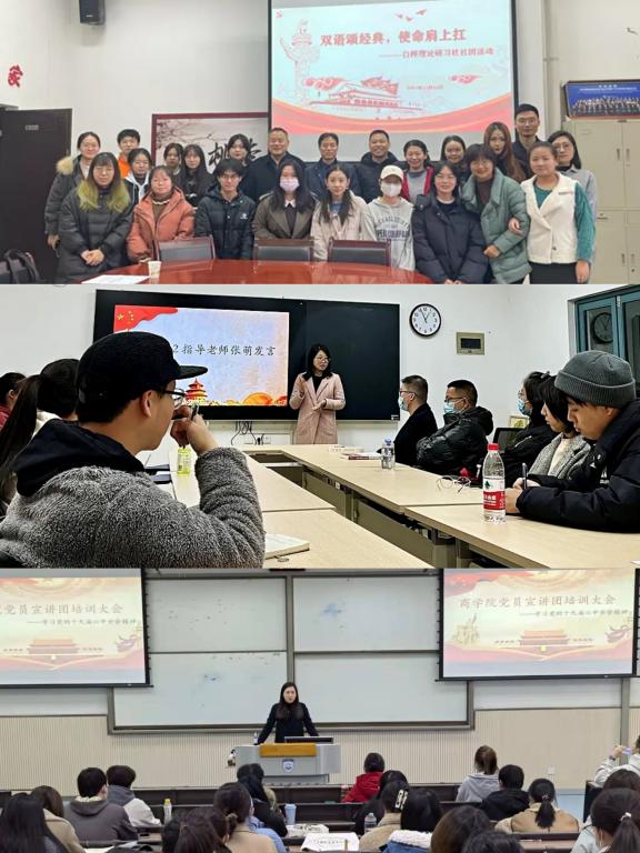 精神宣讲有力度。为提升全校政治理论学习社团全会精神的宣讲水平,校青年学习会邀请西安交通大学马克思主义学院武星星、孙泽海、曹芳三位博士作专题辅导报告,全校政治理论社团近800余人线上参加学习活动。商学院尚学马列研习社举办了理论宣讲培训活动,邀请马克思主义学院博士宣讲团葛轶蒙老师围绕“建国后中国共产党的奋斗与全面建成小康社会”为社团成员进行专题培训。12月底前,各政治理论学习社团将利用“周三政治理论学习日”,依托主题班团党日等载体,在全校开展集中宣讲活动,确保实现全校学生的全覆盖。