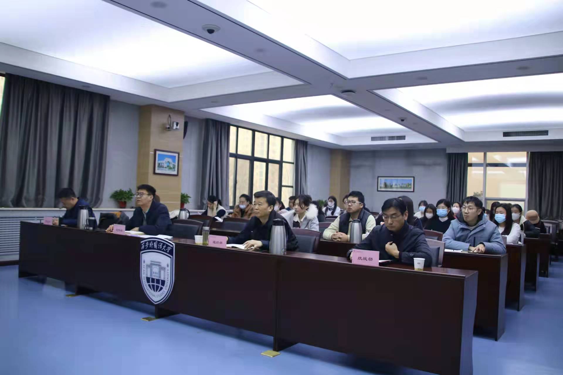 12月10日上午,省委教育工委委托陕西大学生形势政策教育信息中心,邀请中国人民大学中共党史党建研究院执行院长杨凤城教授,为我省高校师生作《以民族复兴为主题 深刻认识中国共产党百年奋斗的伟大成就》主题报告。根据疫情防控和会议要求,我校组织部、宣传部、统战部、学工部等部门负责人,思政课教师、辅导员和学生代表近50人,在行政楼B304会议室通过网络收看了报告会。