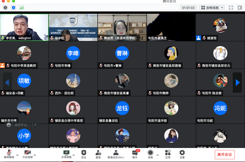 本次线上培训邀请我校英语师范学院·教育学院屈社明、樊桂芳、张维民三位教师,分别围绕“中小学英语课堂教学设计与案例评析”“新时代基础英语教育:理念与实践转向”“高中英语课堂学习活动的设计与实施”三个专题进行讲授。参训学员纷纷表示,本次培训对基层一线中小学英语教师实践教学和思路拓展大有裨益,提升了英语教师的理论素养、专业技能,夯实了学科知识,启发了思路,开拓了视野。