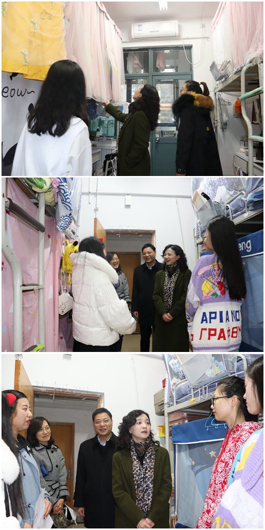 马洁深入学生宿舍,检查冬季宿舍用火用电安全、冬季采暖情况以及卫生环境状况,并围绕同学们近期的学习和生活情况、未来职业规划等,与同学们进行了充分的交流,并做出细心的指导,对走访中发现的问题及时提出了解决措施和办法。