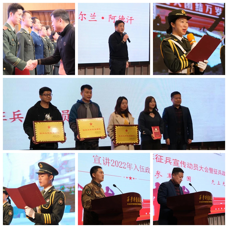 会议在雄壮的国歌声中拉开序幕。商学院退伍学生叶尔兰·阿德汗、新闻与传播学院贾亮亮分享了入伍心得,讲述了自己携笔从戎,献身军营的心路历程,以及在军营中培养严谨作风,铸就坚毅性格,锻造强健体魄的成长经历。优秀退伍学生王志薇通过视频,号召同学们积极报名,踊跃参军。
