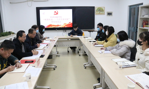 2021年12月15日下午,经济金融学院在思政进公寓党团工作站举办了校领导“听青年说——与学生面对面”师生座谈会,校党委委员、副校长赵国华出席座谈会并与学生代表深入交流,学工部·学生处·武装部(处)负责人,经济金融学院领导班子和师生代表参加了座谈会。会议由学院党委书记魏锋主持。