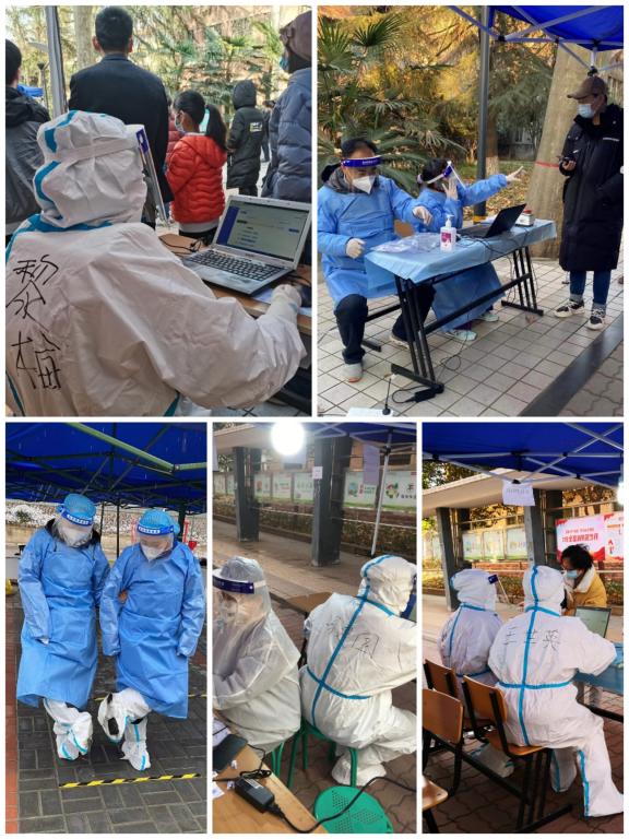 离退休职工工作处全体干部党员积极响应号召,为打赢疫情防控攻坚战奉献光和热。总支书记唐斌、处长刘珂及离退休职工工作处全体同志在长安、雁塔校区家属区身体力行,积极配合其他部门进行核酸检测工作。雁塔校区一位84岁的老人发热,在无救护车的情况下,唐斌同志冒着被感染的风险开私家车送其到医院就诊。刘珂同志晚上11点带领工作人员到行动不便的离退休人员家中采核酸。刘燕、田蔚蔚从早晨一直忙碌到傍晚,防护服的鞋套都磨损得破烂不堪。离退休职工工作处其他工作人员也分别在长安、雁塔校区的核酸检测工作中付出了艰苦的努力。