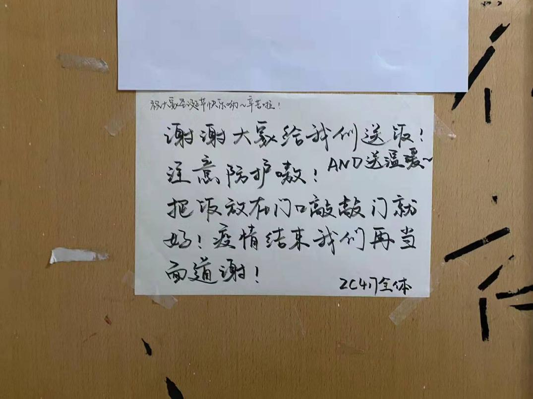 在收到了志愿者们的温暖“投喂”后,被隔离同学也尽力以自己的善意回馈、温暖这群可爱的人。口罩、暖手宝、小礼物、感谢信……在隔离状态的他们不断向志愿者强调自己吃什么都可以,避免耽误他们的课程,让他们在食堂与宿舍之间奔波受寒。这其中包含着他们最真挚的感谢和疫情下西外学子间纯粹的温暖情谊。志愿者们称,在收到意外的惊喜时,感动之余更是认为这本就该是自身责任的,作为西外学子,他们表示很乐意能为学校的疫情管控贡献自己的力量,传递自身的温暖。