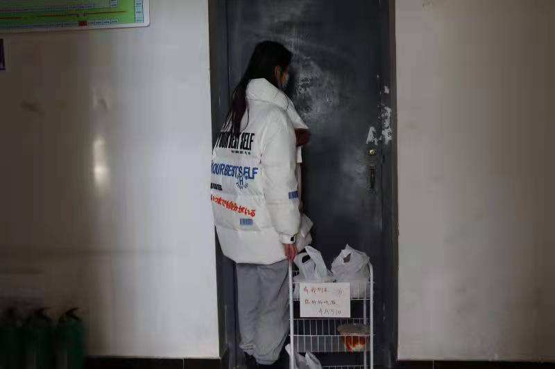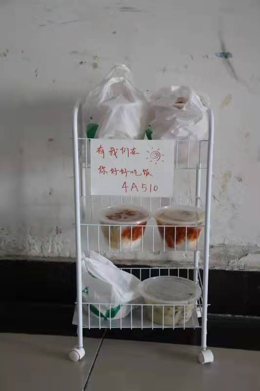 学院的招募志愿者通知一经发出,仅仅几分钟后,报名者接踵而至,无数身影奋勇争先,“疫”无反顾、昂首向前。志愿者们在结束自己的网课后就迅速冲向食堂,他们在给自己宿舍带饭的同时也肩负着好几个宿舍的送餐任务。志愿者们在食堂的各个窗口、宿舍门口前来回奔波,只为将热腾腾的饭菜送至隔离同学的手中。志愿者张旭婧说,自己宿舍吃饼后就能帮其他宿舍带更多的饭,她自己更是在饭堂试图提起十份米饭。在我们面临此次巨大的考验时,志愿者们用“爱的投喂”温暖了每一个人的内心。