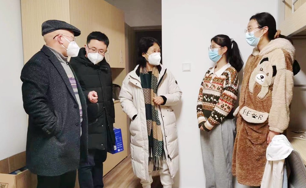 2022年1月2日晚,李雪茹副校长深入高级翻译学院宿舍慰问学生,研究生院领导班子同行走访。李副校长一行分别前往学生宿舍3B公寓楼和7号公寓楼看望了6名交流生,和同学们进行了亲切交流,询问他们在我校的学习生活情况和封控管理后遇到的困难,传达了学校疫情防控政策和要求,并赠送了学校准备的新年慰问品。他表示学校将尽全力做好学生们的学习生活服务工作,请同学们在此安心学习,与学校一道,携手抗疫。