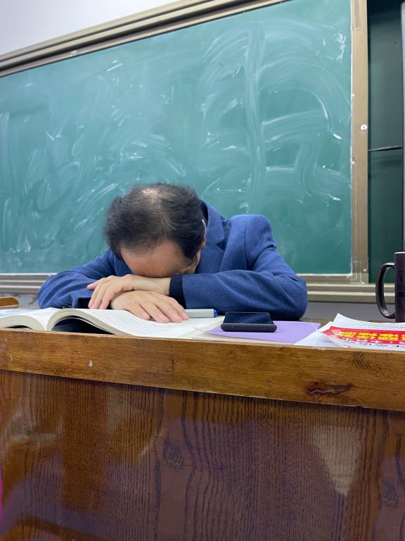 最后一堂线下课马吉德老师课间忍痛伏案休整