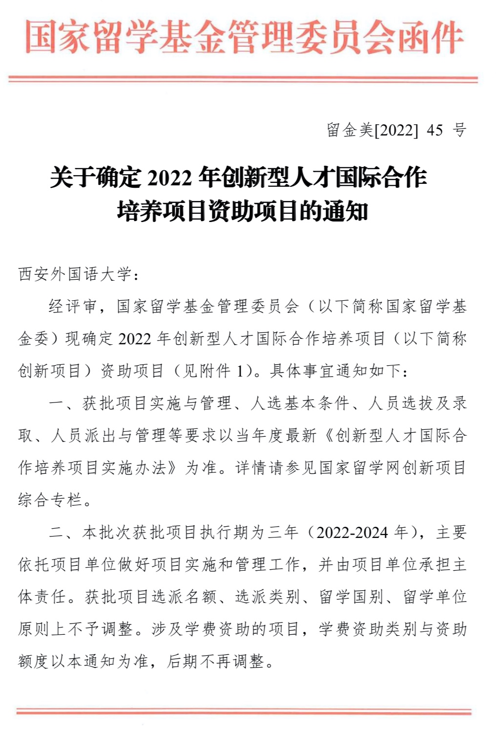 近日,国家留学基金管理委员会公布了“2022年创新型人才国际合作培养项目”资助名单,我校申报的“中欧高校国际化人才联合培养项目”成功获得立项资助。这是我校首次获批创新型人才国际合作培养项目,实现了该类高层次项目零的突破,也是我校“双一流”国际化指标的历史性突破。