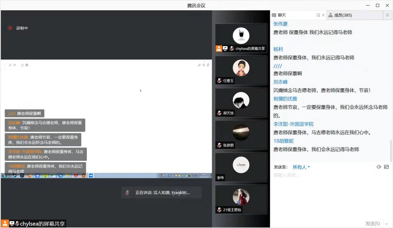 1月7日下午,亚非学院举办线上追思会缅怀马吉德老师。亚非学院院长马福德、党委书记蓟光辉、马吉德老师生前同事、学生、家人等近400人参加。追思会由院长马福德主持。