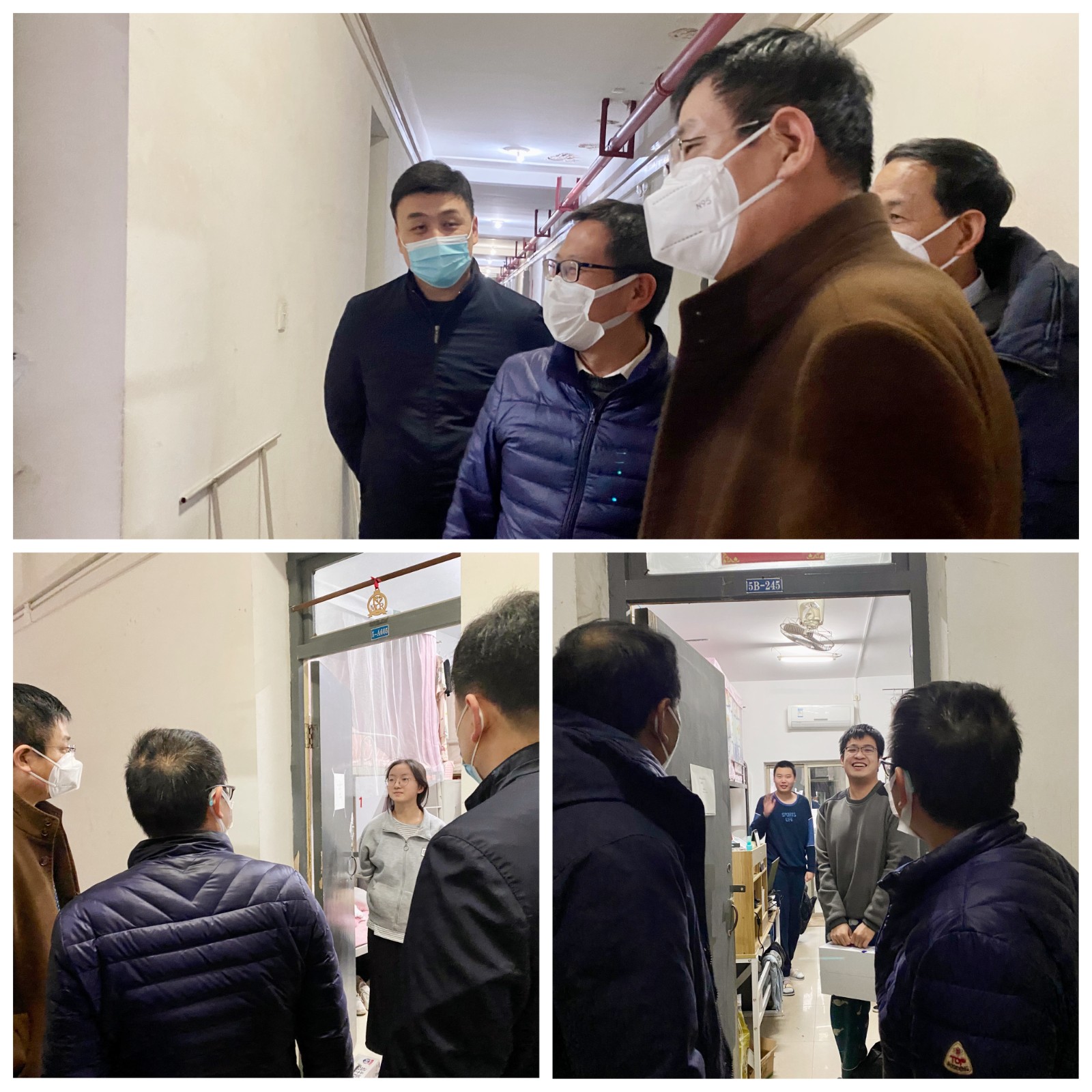 为及时了解隔离学生思想动态,关注隔离宿舍学生学习生活情况,合理安排隔离生活。1月5日、6日,副校长姜亚军、教务处处长庞闻、英文学院院长南健翀、党委书记单升军、党委副书记马文静及各年级专兼职辅导员一行前往隔离宿舍慰问学生,重点慰问了17间宿舍集中隔离C类或黄码学生。
