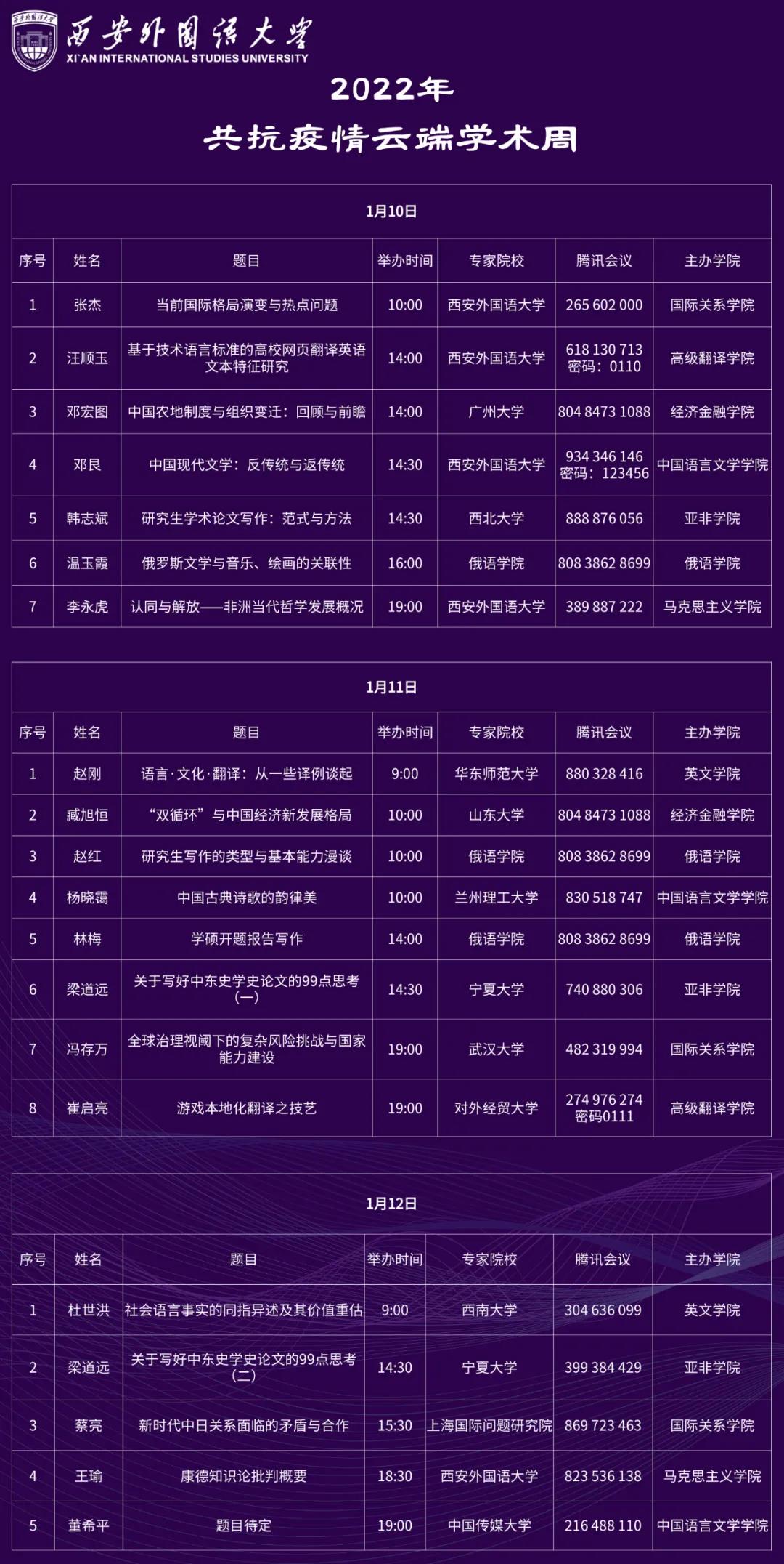 为丰富同学们的学习生活,确保研究生教育“不停教”“不停学”“不停研”,研究生院·研究生工作部联合各研究生培养学院在新年伊始之际为全校研究生带来了 “2022年共抗疫情云端学术周”活动。此次活动从1月10日开始,历时两周,邀请了50余名校内外知名专家、教授为全体师生带来一场学术盛宴。