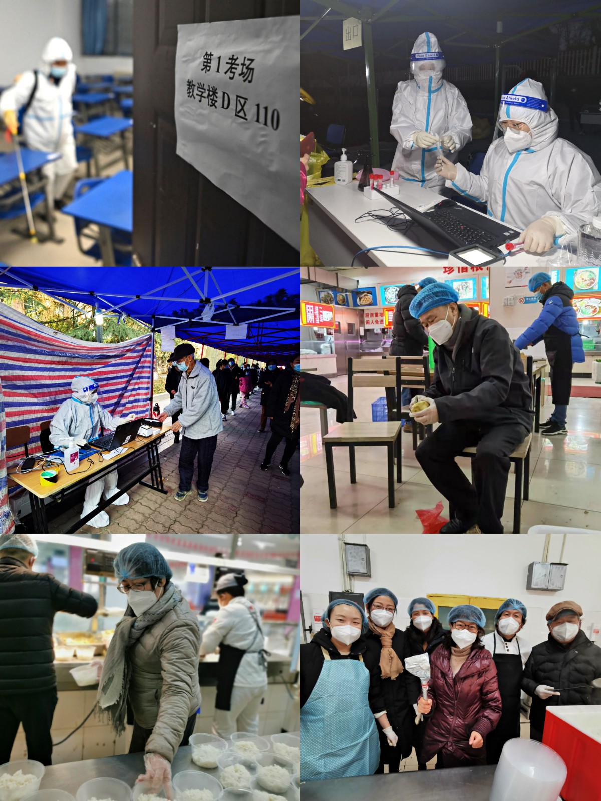 一线行动,当好寒冬“守护人”。广大机关党员干部坚持将疫情防控作为巩固深化“不忘初心、牢记使命”主题教育成果、推进党史学习教育和检验“我为师生办实事”活动的实践检验,把初心写在行动上,把使命担在肩膀上,将“抗疫精神”内化于心、外化于行,听从指挥,服从大局,主动请战,担当作为,舍小家、为大家,吃住办公室,干在最前线,坚守在核酸检测点位、健康扫码、入户摸排、物资保障、食堂后厨等一线工作中,为打赢疫情防控阻击战提供最及时、最有力的火线支援。组建“党员先锋突击队”,40余名党员干部响应号召,踊跃报名,不畏严寒,逆向而行,为研招考试保驾护航。发动近200人组建爱心帮厨志愿者队,党员领导干部深入食堂,洗菜、切菜、打饭、包装,用爱和坚守保障18000余名学生的一日三餐。抽调和组织70余人,组建机关党委核酸检测党员先锋队,全天候待命、全身心投入、全面性参与,高频次、分时段、持续性,全力保障全校十余轮核酸检测,落实全员检测、不漏一人,在疫情防控的生动实践中践行习近平总书记“走在前、作表率”的殷殷嘱托,诠释机关党员干部勇于担当的政治品格,为夺取学校疫情防控和事业发展“双胜利”做出了积极贡献。