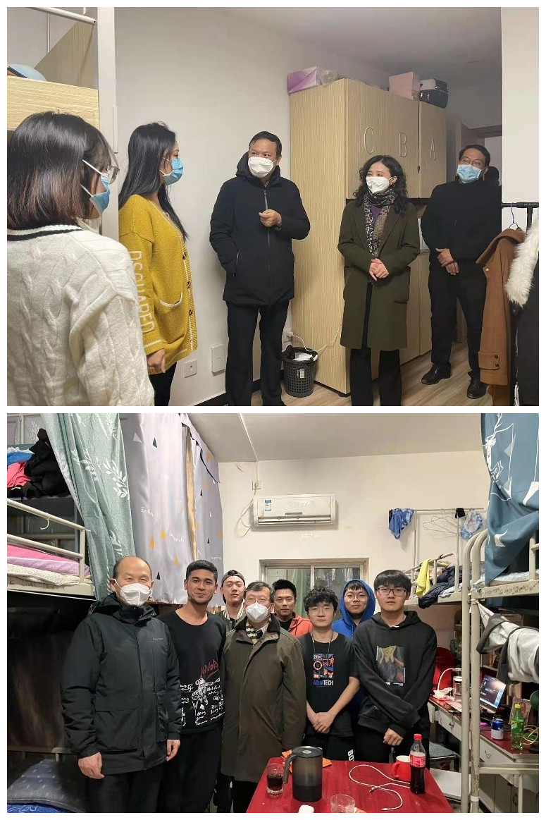 领导包片,确保方向把得准。初心如炬,使命如磐。学校党委认真分析研判,科学谋划部署,面对疫情防控严峻形势和艰巨任务,火线成立学工系统抗疫临时党支部,以学生公寓楼为单位下设临时党小组,全面负责疫情期间学生管理服务工作。提前制定《出现确诊病例无症状感染者工作预案》,全校划分7个责任区域,其中学生公寓分片划定为4个责任区,全体校领导亲自挂帅,靠前指挥,分片包干区域楼宇,以战时状态积极投入到疫情防控、维护稳定第一线,重点抓好决策部署、人员调动、资源配置和应急处理,确保抗疫方向不偏、人心不慌、工作不乱。元旦前夕,党委主要领导和各级党员干部纷纷深入学生宿舍慰问,与学生共跨新年、共话美好未来,当好学生的主心骨和贴心人。