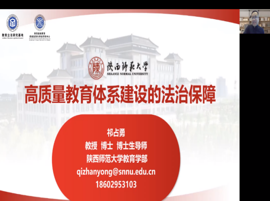 开幕式结束之后,主题汇报阶段由祁占勇教授和袁利平教授分别做《高质量教育体系建设的法制保障》和《教育研究的术与道——基于个人学术研究的思考》的主题报告。祁占勇教授从“高质量”“教育体系”“教育权”等多维度对我国教育体系发展进行论证,袁利平教授从学理角度出发,结合自身经验以及具体实例向同学们展示教育研究的全过程。两位教授的讲座从理论到实践,从宏观到具体,并向同学们推荐书籍和期刊。