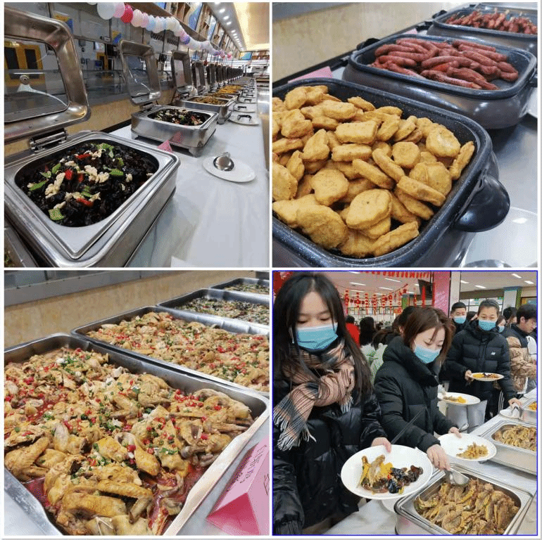 你方唱罢我登场,师生联欢过大年。在紧张热闹的包饺子体验结束后,大家在等待饺子煮熟的间隙开展了一场文艺表演活动。各学院学生积极参与,英语师范学院的同学们为大家带来的汉服展示《古韵中国年》充分展示了中国传统服饰之美;新闻与传播学院学生带来的原创古体文朗诵《长安贺岁序》惊艳四座,展示了古典文学之美;欧洲学院同学们带来的多语朗诵《四季》展示了多文化交流融通之美……在节目表演之余,老师与同学们也进行了“虎视眈眈”“异曲同工”等一系列有趣的互动游戏,尤其是校领导组队和同学们组队进行的成语接龙活动更是将活动推向高潮。伴随着同学们的节目表演,师生联欢互动,整个食堂一楼欢声笑语,掌声不断,“年”味十足!活动之后,校领导为留校师生、一线工作人员送上热气腾腾的饺子和美味佳肴,整场联欢会在全体校领导与演职人员、志愿者的合影中圆满结束。同学们纷纷表示,学校让自己在回不去家的情况下,度过了一个祥和温暖、丰富多彩的除夕,使自己感受到了家一般的温暖。